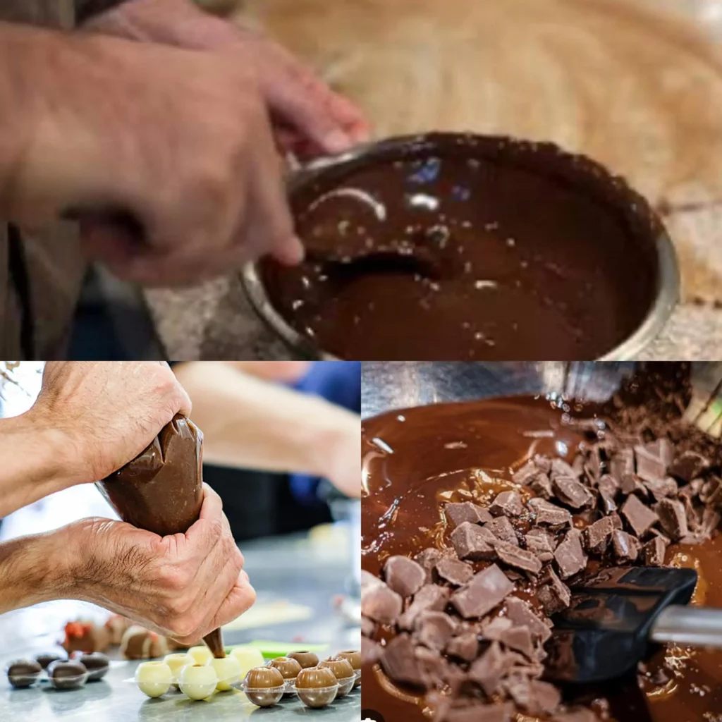 Erst durften die jüngeren Kinder Plätzchen backen, später durften die größeren Kinder aus Schokolade Pralinen und Tafeln herstellen.